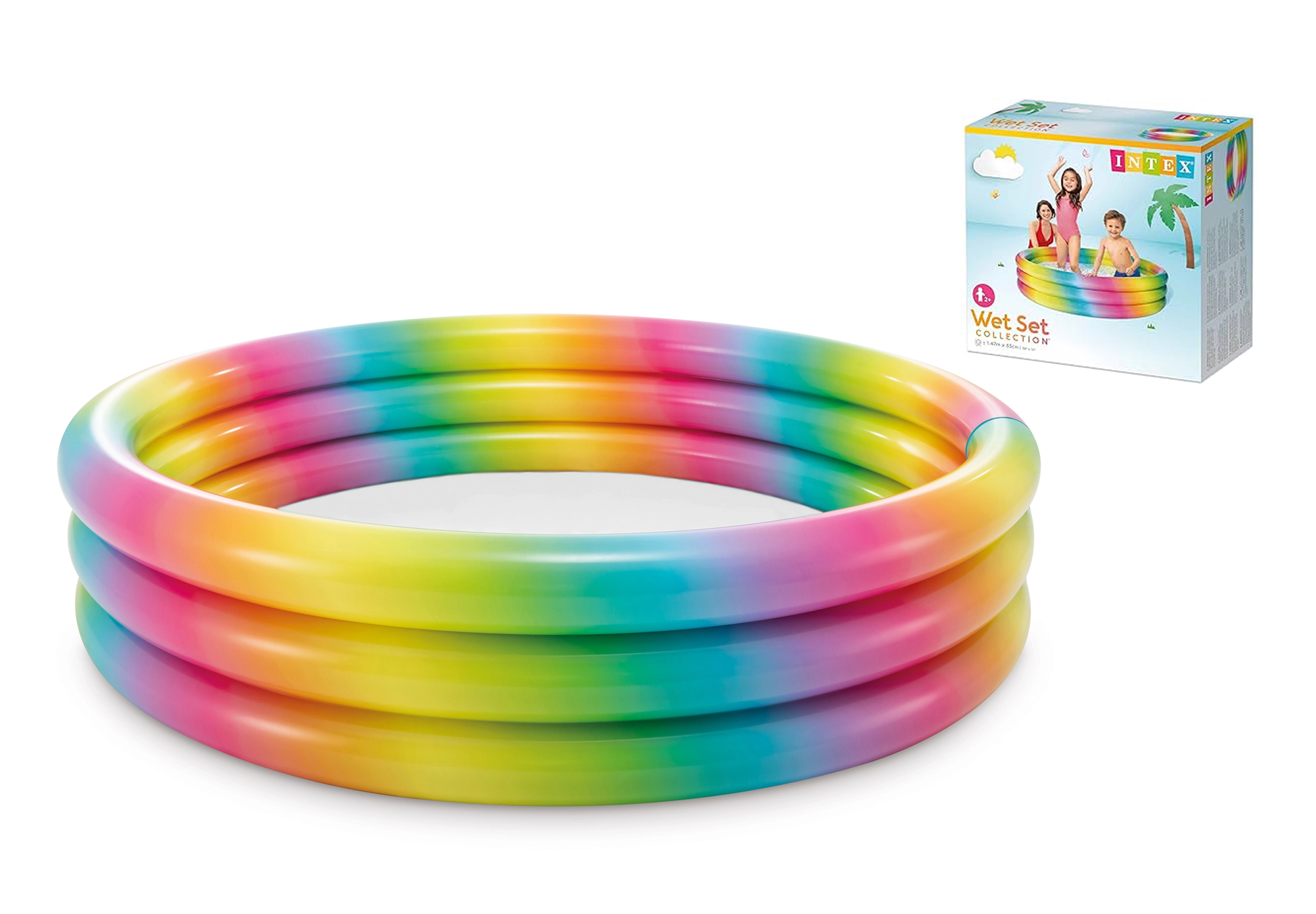 Ez a színes medence lenyűgözi a gyerekeket vonzó szivárványos színével, amely vidám hangulatot kölcsönöz minden kertnek.