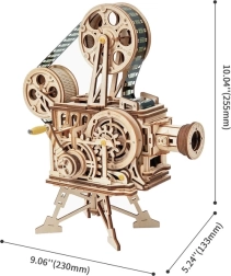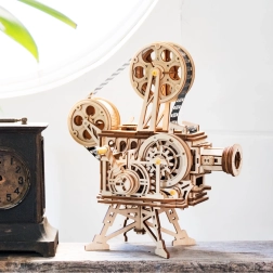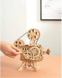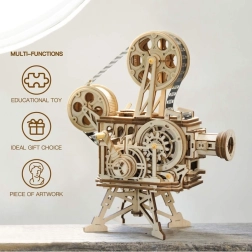 Építsd meg saját mechanikus filmvetítődet természetes fából, amely valóban vetít fekete-fehér filmet. A ROKR modell kézi kurblis meghajtást, lézerrel precízen kivágott elemeket és ragasztó nélküli szerelést kínál. Remek oktató dekoráció, amely fejleszti a műszaki gondolkodást, és örömet szerez a retro dizájn és a mozi szerelmeseinek.