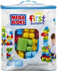 A MEGA BLOKS FIRST BUILDERS nagy kockatáska biztonságos és szórakoztató építést kínál 1 éves kortól. 60 extra nagy elem klasszikus színekben, úgy tervezve, hogy könnyen kézben tarthatók legyenek, stabilan kapcsolódjanak, és ugyanolyan könnyen szét is szedhetők.