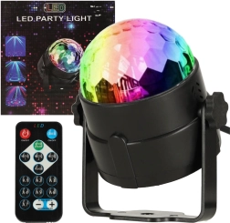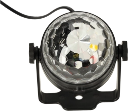 A diszkógömb 3x1W LED-et használ, amely széles színskálájú effekteket hoz létre.