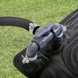 A több alátét összekapcsolásának lehetőségével a fűtést a medencéje térfogatához igazíthatja. Az integrált bypass szelep lehetővé teszi az átfolyás szabályozását, illetve az alátét ideiglenes kiiktatását a körből. Az alátét támogatja a Ø 32 mm tömlőket, a mellékelt adapterekkel pedig a Ø 38 mm méretet is. A legjobb teljesítményért használjon 2006–5678 l/ó átfolyású szűrőszivattyút.