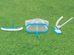 A hálóval könnyen összegyűjthetőek a lebegő szennyeződések, míg a porszívó hatékonyan tisztítja a medence alját. A kefével erőteljes sörtéi biztosítják az algák és egyéb lerakódások eltávolítását a medence falairól.