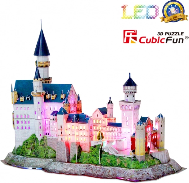 Fedezze fel a romantikus építészet varázsát a Neuschwanstein kastély részletes 3D modelljével. A LED háttérvilágításnak köszönhetően a modell nappal és éjjel egyaránt kitűnik, és bármely helyiség díszévé válik. A készlet kényelmesen, ragasztó és olló használata nélkül állítható össze – a perforált elemeket elég kitörni, majd követni az útmutatót.