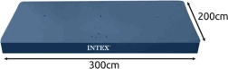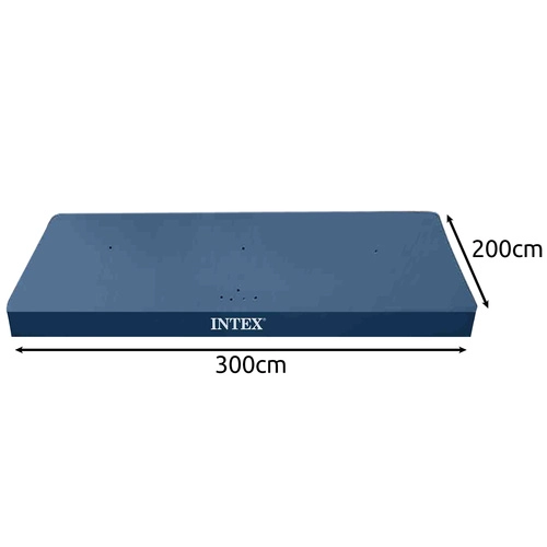 Az INTEX takarót a 300 × 200 cm-es téglalap alakú vázas medencékhez tervezték. Tartós anyagának köszönhetően ellenáll az időjárásnak, és megóvja a vizet a levelektől, rovaroktól és szennyeződésektől. A kb. 20 cm-es ráhagyás és a rögzítő zsinór stabil rögzítést biztosít, hogy a takaró ne csússzon le.