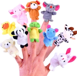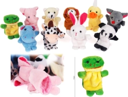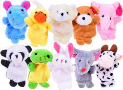 A csomagban megtalálod a kedvelt állatkákat: vízilovat, egérkét, kutyust, macit, békát, kiselefántot, tehénkét, pandát, nyuszit és kiskacsát. A kompakt méretnek köszönhetően a bábok könnyen felhúzhatók az ujjra, és ideálisak utazáshoz, óvodába és otthonra is.