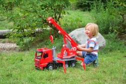 Ez a piros MERCEDES ACTROS darusautó a Lenától minden kis építőt lenyűgöz. A forgatható karnak, a működő csörlőnek és kötélnek, a kihúzható stabilizáló lábaknak és a kerekeket rögzítő ékeknek köszönhetően valósághű és biztonságos játékélményt nyújt. Csehországban készült, tartós műanyagból, és beltéren valamint kültéren is használható.