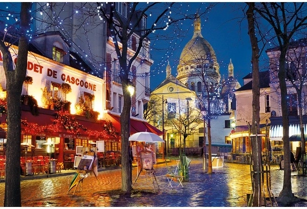 Gyönyörű Montmartre puzzle Párizsban, 1500 darab. Fedezze fel az egyik leghíresebb történelmi negyed esti hangulatát.