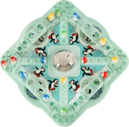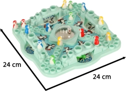 A négyzet alakú tábla minden asztalra elfér, utazáshoz is ideális. Színes, pingvin alakú bábuk 2–4 játékos számára.