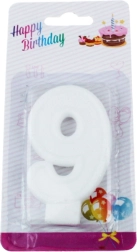 Elegáns születésnapi gyertya 9-es számmal és finom csillogással – tökéletes választás a kívánság elfújásának különleges pillanatához. Tiszta fehér kivitelének és csillámának köszönhetően sokféle tortastílushoz és dekorációhoz passzol.