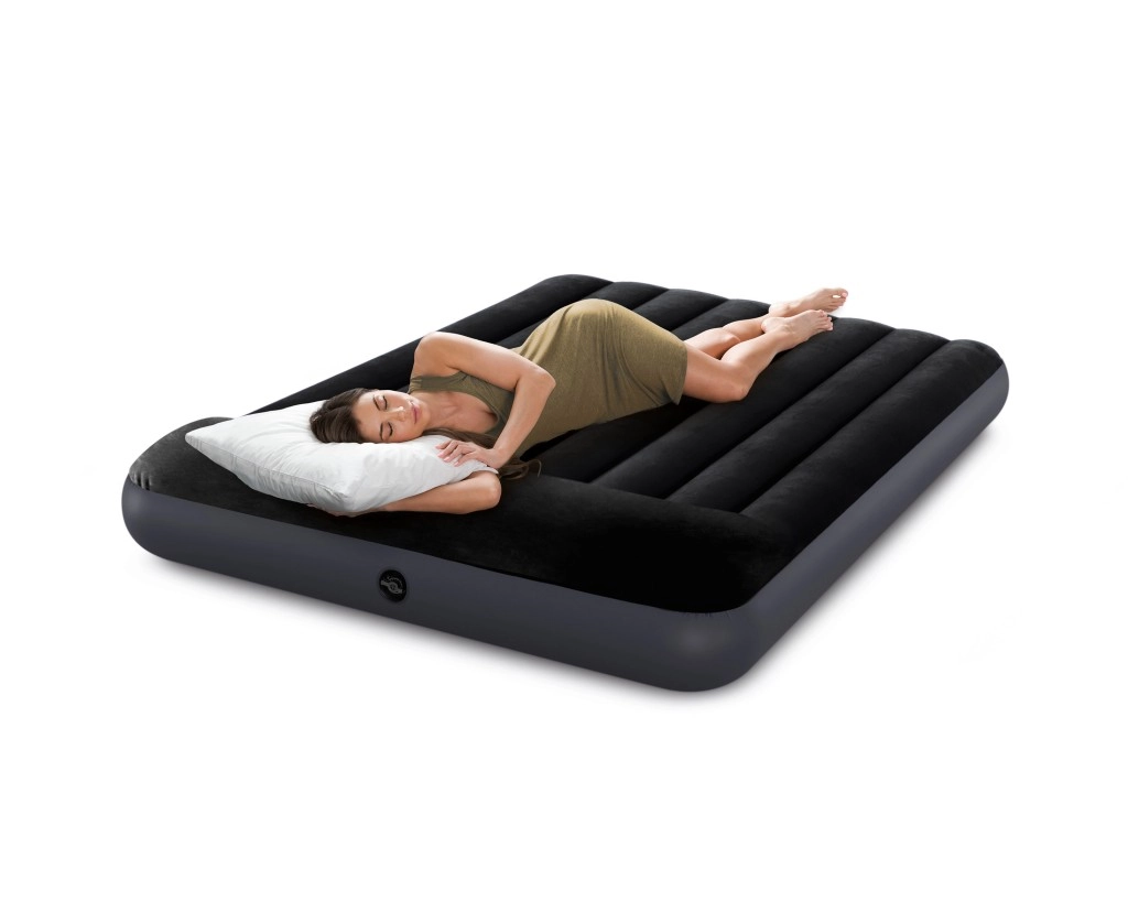 Kényelmes, Full méretű felfújható ágy stabil tartással, integrált fejpárnával és kellemes felülettel a nyugodt alváshoz otthon és utazáskor egyaránt. A minőségi vinilnek és a finom, flokkolt felületnek köszönhetően tartós és kényelmes. Könnyű felfújás és leeresztés a könnyű kezelhetőségért, kompakt tárolás a helytakarékosságért.