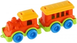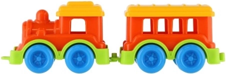 Ez a műanyag vonat élénk színekben lett tervezve, amelyek vonzzák a gyerekek figyelmét és támogatják a vizuális ingereket.