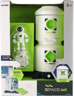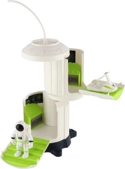 Az állomás tetején űrkötél található, amelynek köszönhetően az űrhajós biztonságosan indulhat „űrsétára”. A készlet tartalmaz parkolóhelyet a lebegő űrjárműnek, valamint lehetőséget az űrautó „töltésére” (kompatibilis készletekből). Minden azonnali játékra kész – a csomag 2× AA elemet tartalmaz.