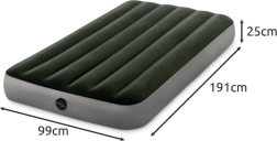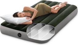 Egyszemélyes felfújható INTEX matrac Dura-Beam33 és Fiber-Tech33 technológiával, amely stabil tartást, kényelmes velúr felületet és gyors felfújást és leeresztést kínál a 2 az 1-ben szelepen keresztül. Teherbírás 136 kg, ideális otthonra, sátorba és kempingezéshez.