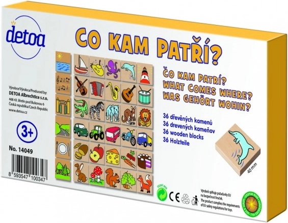 Detoa fa puzzle Mi hova tartozik egy didaktikai játék, amely segít a gyerekeknek felismerni a tárgyakat és hozzárendelni őket a megfelelő képekhez. Ez a játék ideális a logikai gondolkodás és a memória fejlesztésére 3 éves kortól.