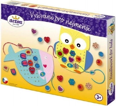 Ez a hímzőkészlet ideális a 3 éves kortól kezdődő motoros képességek és kreativitás fejlesztésére. Színes sablonok bagoly és halacska formában megtanítják a gyerekeket a precizitásra és a türelemre.