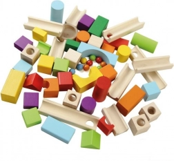 A Detoa golyópálya szórakoztató és oktató játék, amely nemcsak a gyerekeknek szól, hanem azoknak a szülőknek is, akik meg akarják osztani az építés és játék örömét a gyermekeikkel. Ez a készlet 48 fa darabot és 10 fa golyót tartalmaz, amelyek könnyen kombinálhatók és építhetők. Az építőkészlet támogatja a finommotorika, a kreativitás és a térbeli képzelet fejlesztését.