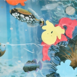 A szőnyeg hozzájárul a gyermek motorikus képességeinek és izmainak megfelelő fejlődéséhez, miközben szórakozik az úszó halacskákkal.
