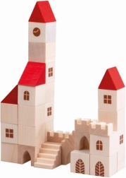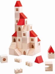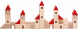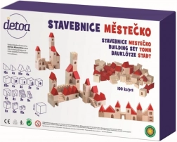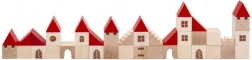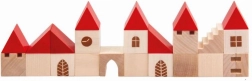 Ez a fa építőkészlet 100 darabot tartalmaz különböző formákban és méretekben, amelyek lehetővé teszik a gyermekek számára saját kisvárosuk létrehozását. A piros tetőkkel és természetes fával készült színes kivitel révén ez a készlet nemcsak szép, hanem teljesen funkcionális is a képzeletbeli játékhoz. Segít fejleszteni a finom motorikus készségeket és a téri érzékelést a gyermekeknél.