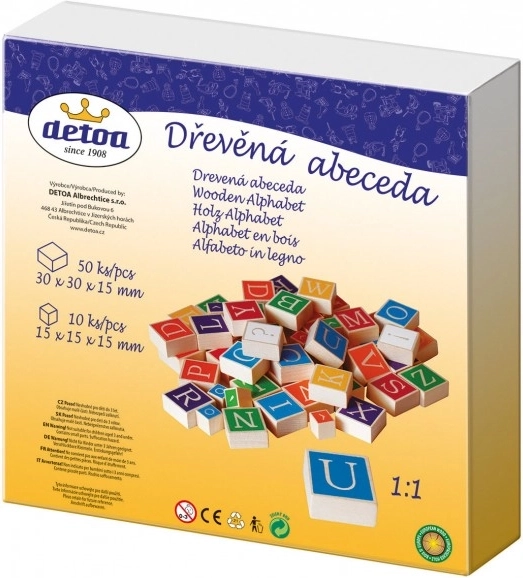 A fa ábécé 60 darabot tartalmaz betűkkel és ékezetekkel, amelyek minőségi fából készültek. Ideális eszköz az olvasás és írás kezdeteihez, emellett megfelel az EU gyermekjátékok biztonsági követelményeinek.
