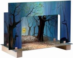 A többrétegű díszletek mélységérzetet keltenek, így az erdei történetek igazán látványos színpadon játszódnak.