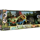 Ez a színes dinoszaurusz-készlet valósághű formákkal és felületi részletekkel ösztönzi a gyerekek kíváncsiságát és játékát. A különböző fajok jellegzetes jegyei (szarvak, taréjok, hosszú nyakak) támogatják a krétakori állatvilág megismerését és a képzeletbeli történetmesélést.