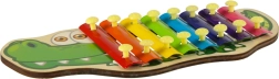 A csomag tartalma: krokodil alakú fa xilofon, 2 fa ütő, kártya egyszerű „fogásokkal”/dallamokkal a játékhoz.