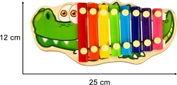 Fedezd fel a zene örömét a kedves, krokodil alakú xilofonnal. A nyolc különböző hangnak köszönhetően a gyerekek könnyedén eljátszhatják első egyszerű dallamaikat. A hangszeres játék támogatja a kreativitást, türelmet, koncentrációt, és segít kialakítani a ritmusérzéket.