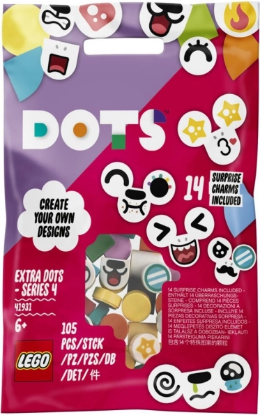 A LEGO DOTS kiegészítők – 4. sorozattal a gyerekek és az alkotás szerelmesei a hangulatukhoz illően szabhatják személyre karkötőiket, szobai dekorációikat vagy táskafüggőiket. A csomag széles színpalettát és mókás mintákat kínál, így minden alkotás egyedi lesz.
