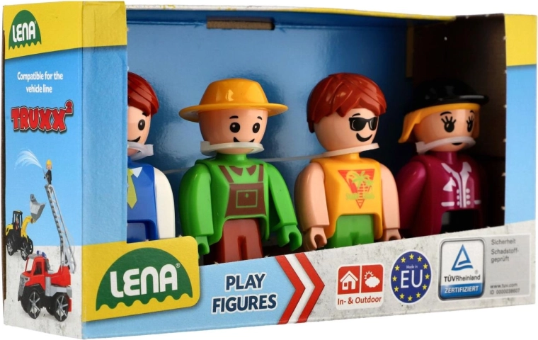 A zöld LENA figurakészlet változatos játékélményt és fantáziafejlesztést kínál a gyerekeknek. A négy strapabíró figura könnyen kézben tartható a kicsi kezek számára, mozgatható végtagokkal rendelkezik, és ideális az önálló játékhoz vagy építőkészletek és járművek kiegészítéséhez.