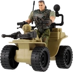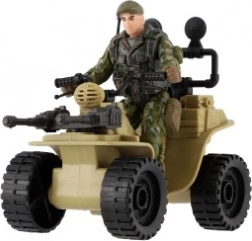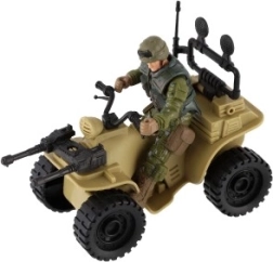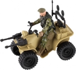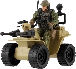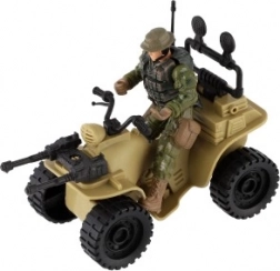 Ez a négynégyes realisztikus részleteket kínál, beleértve a katona terepszínű öltözékét és a nagy fekete gumikat.
