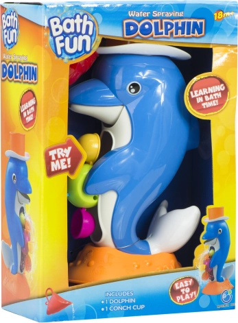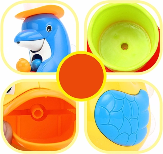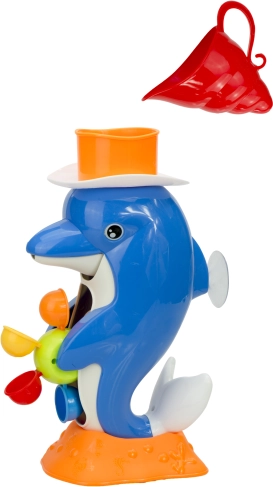 Kiváló játék delfin formában vízi mókázáshoz. Ha vizet öntesz a delfin alakú kalapba, megforgatja a malmot. A hátulján található tapadókorong lehetővé teszi a delfin rögzítését a kádhoz vagy fürdőszoba falához. A játék kiváló minőségű, egészségre ártalmatlan műanyagból készült, amely rendkívül ellenálló a sérülésekkel szemben. A csomag része egy kagyló formájú öntözőkanna is.