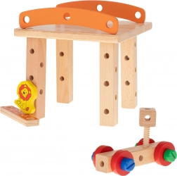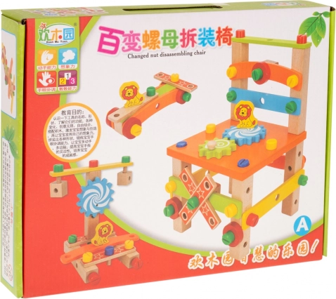 Ez a minőségi fa készlet lehetővé teszi a gyerekek számára, hogy műhelyes kisszéket és további eredeti modelleket építsenek. A csavaroknak, anyáknak és fogaskerekeknek köszönhetően felfedezik az egyszerű mechanika alapelveit, gyakorolják a koncentrációt és a kézügyességet. A kisszék stabil, és az átgondolt furat- és csatlakozórendszer rengeteg kombinációt kínál.