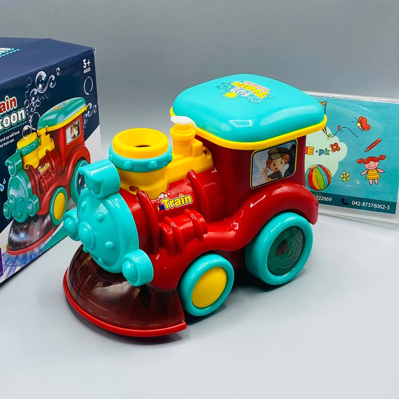 Nemcsak a menet, de a mozdony fényeket is ad, zenél és menet közben szappanbuborékokat fúj a kéményből.