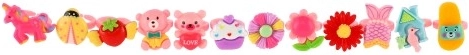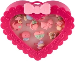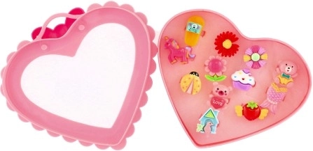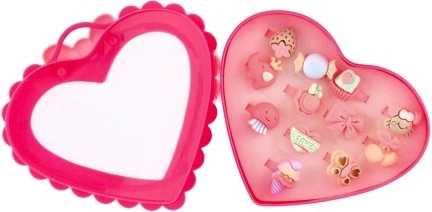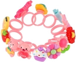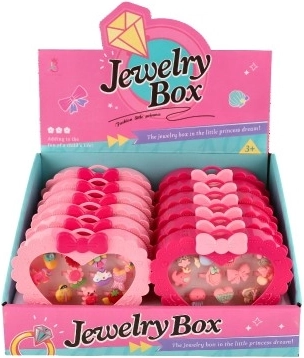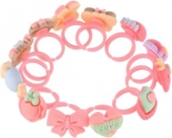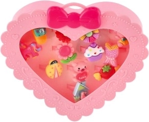 A gyűrűk készlete ideális azoknak a kis hercegnőknek, akik szeretik a divatot, és mindegyik ujjukra más gyűrűt szeretnének. Mindegyik 12 gyűrű egyedi dizájnnal rendelkezik, amelyek közé tartozhatnak virágok, gyümölcsök, masnik vagy állatkák.