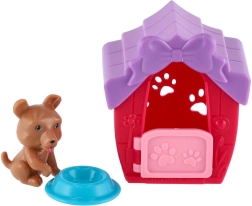 A készlet része egy etetőtál és egy kölyökkutya figura. A házikót masni és domború mancsnyomok díszítik, amelyek különleges bájt adnak a játéknak.