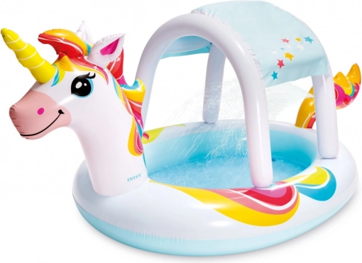 Biztosítson a gyerekeknek biztonságos vízi mókát a kertben a varázslatos, egyszarvú stílusú medencével. Az alacsony belépő él és a 18 cm magas falak kényelmes, biztonságos pancsolást nyújtanak a legkisebbeknek. A beépített vízpermetező gondoskodik a kellemes hűsítésről a forró napokon.