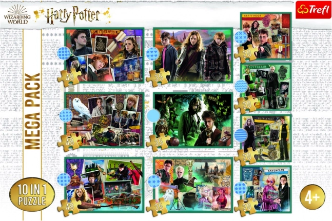 Fedezd fel a szórakozást a kisebb és nagyobb varázslóknak ezzel a mega 10 az 1-ben puzzle szettel a HARRY POTTER varázsvilágából. A csomag 10 önálló kirakót tartalmaz különböző darabszámmal és 223 × 156 mm, illetve 167 × 156 mm méretekkel, így mindenki megtalálja a saját kihívását. A kiváló minőségű anyagok és a kalanderezett, fényt visszaverő papír kényelmes kirakást és gyönyörűen telített színeket biztosítanak.