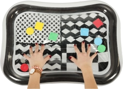 Az alátét gazdag érzékszervi stimulációt kínál kontrasztos színekkel és belül mozgolódó színes formákkal. Kiválóan támogatja a vizuális és tapintási fejlődést.