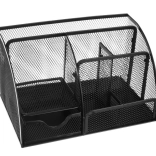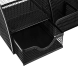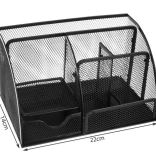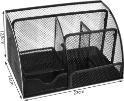 Tartsa rendben az íróasztalát a kompakt és tartós asztali rendező segítségével, amely fémhálóból készült elegáns fekete színben. 6 rekeszt, praktikus kihúzható fiókot és okos elrendezést kínál tollakhoz, kihúzófilcekhez, öntapadó jegyzetekhez, gemkapcsokhoz és ollóhoz – ideális irodába, otthoni munkasarokba és tanuláshoz is.