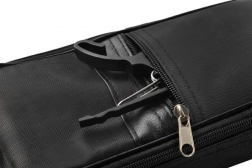 Két elülső zseb: a felső apróságoknak (pengetők, capodaster, húrok), az alsó kottáknak vagy füzeteknek A4 formátumban.