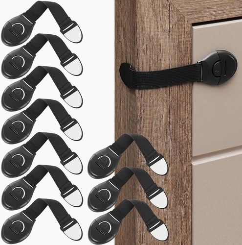 Fedezze fel az univerzális, könnyen felszerelhető fekete szekrénybiztonsági zárat, amely védi gyermekei ujjait és megakadályozza a szekrény tartalmának elérését. Alkalmas szinte bármilyen szekrényhez és fiókhoz.