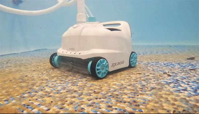Az INTEX ZX300 megbízható automata porszívó, amely egész szezonban tisztán tartja a medencéjét. Négy kerék, erős szívóteljesítmény és két forgókefe segítségével megbirkózik a homokkal, levelekkel és lerakódásokkal a medence alján és falain. Közvetlenül a szűrőszivattyúhoz csatlakozik, és teljesen automatikusan működik – önnek csak élveznie kell a vizet.