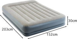Az INTEX kétszemélyes felfújható matraca Dura-Beam Fiber-Tech technológiával stabil tartást, kényelmes velúr felületet és gyors felfújást és leeresztést kínál a beépített elektromos pumpának köszönhetően, körülbelül 3 perc alatt. Ideális kényelmes vendégágynak, otthonra és kempingezéshez, akár 272 kg teherbírással és egyszerű tárolhatósággal.