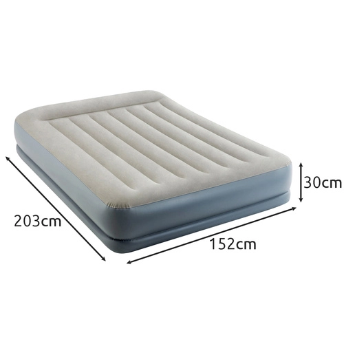 Élvezze a megbízható és kényelmes alvást, amikor csak szüksége van rá. Az INTEX Pillow Rest Mid-Rise felfújható ágy a tartós Dura-Beam Fiber-Tech szálas szerkezetet kombinálja a stabil, besüppedésmentes alátámasztásért, valamint a kellemes velúr (flokkolt) felületet a puha érzetért. A 203 × 152 × 30 cm-es, kétszemélyes méret kényelmes teret biztosít két fő számára.