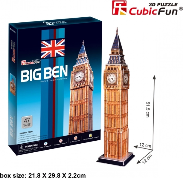 Vigye haza London egy darabját a CUBICFUN Big Ben 3D kirakóval. A World’s Great Architecture (A világ leghíresebb építészete) sorozat építőkészlete kb. 3 mm vastag, laminált nyomott papírral bevont habból készül, így a modell stabil és látványos. Az összeállítás tiszta és kényelmes – ragasztó és olló nélkül – a mellékelt útmutató alapján.