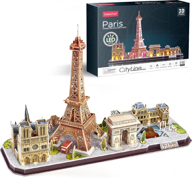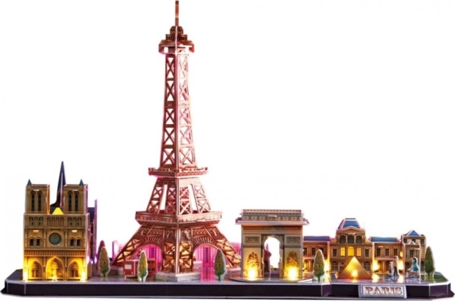 Varázsolja Párizs hangulatát otthonába a CubicFun CityLine sorozatának világító 3D panorámájával. A 115 darabos készlet laminált papírral bevont, merev habból készült elemeket tartalmaz, és ragasztó és olló nélküli építést kínál, a kész modell pedig éjszakai LED effekttel díszít.
