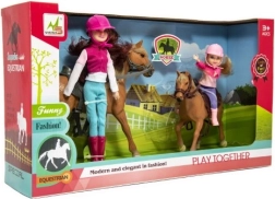Ez a csodálatos készlet ideális választás minden gyereknek, aki szereti a lovakat és arról álmodik, hogy lovas legyen. A készlet részeként két baba található lovas ruhában, sisakokkal, kalandra készen. Kiváló minőségű és tartós anyagok biztosítják, hogy a készlet akár a legmozgalmasabb játékot is bírja.