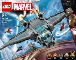 • Kidolgozott űrhajó – A LEGO® Marvel Avengers Quinjet vadászgép (76248) modell a szuperhősök repülőjének hiteles másolata a Marvel-filmekből • Ismert szereplők – 5 ikonikus minifigura: Fekete Özvegy, Thor a pörölyével, Vasember, Amerika Kapitány a pajzsával és Loki a jogarával • Építs, játssz és állítsd ki – Ez a részletgazdag, híres Quinjet vadászgép nyitható pilótafülkével, utastérrel és hátsó résszel, behúzható futóművel és állítható szárnyakkal nyűgöz le • Ajándék Marvel-rajongóknak – A megépíthető Quinjet vadászgép lenyűgöző és maradandó születésnapi, karácsonyi vagy bármilyen alkalomra szóló ajándék 9 éves kortól • Epikus légi kalandok – A Quinjet vadászgép lenyitott szárnyakkal és kiengedett kerekekkel több mint 14 cm magas, 34 cm hosszú és 35 cm széles • Választható talapzat és matricák – A modellhez levehető kiállító talp és 2 ív matrica tartozik, hogy a gyerekek Avengers vagy S.H.I.E.L.D felirattal díszíthessék a Quinjettet • Interaktív, digitális építés – Az útmutatókat tartalmazó LEGO® Builder alkalmazás intuitív nagyítási és forgatási eszközökkel segít, hogy a gyerekek munka közben is vizualizálhassák a modellt • Még több móka – Az egymással kombinálható LEGO® Marvel gyűjthető készletek széles választéka innovatív elemekre és korlátlan építési, valamint játékélményekre inspirálja a fiatal építőket • Minőségi garancia – A LEGO® elemek megfelelnek a szigorú iparági minőségi szabványoknak, vagyis egységesek, kompatibilisek és könnyen összeilleszthetők • Biztonsági garancia – A LEGO® elemeket leejtjük, melegítjük, összezúzzuk, csavarjuk és elemezzük, hogy biztosítsuk: megfelelnek a szigorú nemzetközi biztonsági szabványoknak