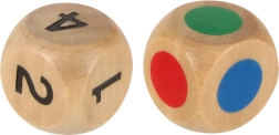 36 maci (6 szín), 6 szilikon pohár, 2 fa kocka, 16 kétoldalas feladatkártya, csipesz