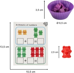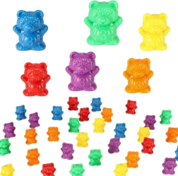 36 színes maci 6 színben motiválja a gyerekeket a válogatásra, összeadásra és összehasonlításra. Ideális az első matematikai lépésekhez játékos formában.